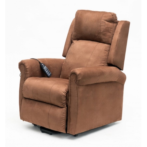 Alzapersona: posizionamento elettrico in altezza della seduta della poltrona grazie al pistone tedesco OKIN, che facilita l'alzata in piedi.