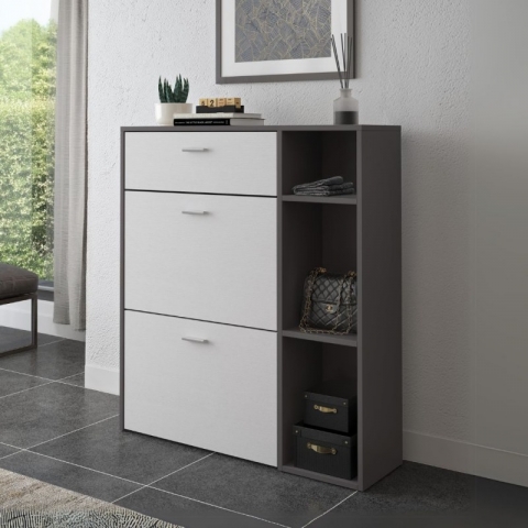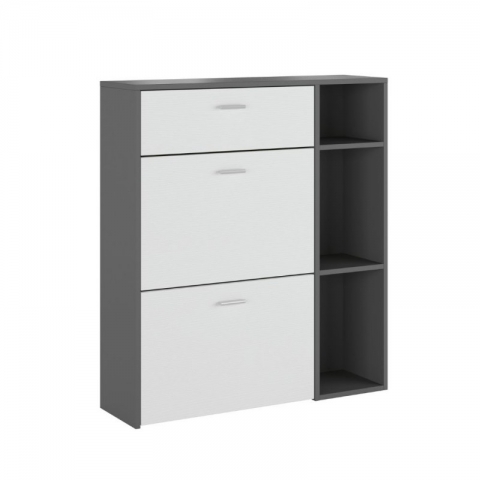 SCARPIERA 2 ANTE A RIBALTA E 1 CASSETTO, COLORE GRIGIO ANTRACITE E BIANCO 90x26 H101,5 - PRONTA CONSEGNA
