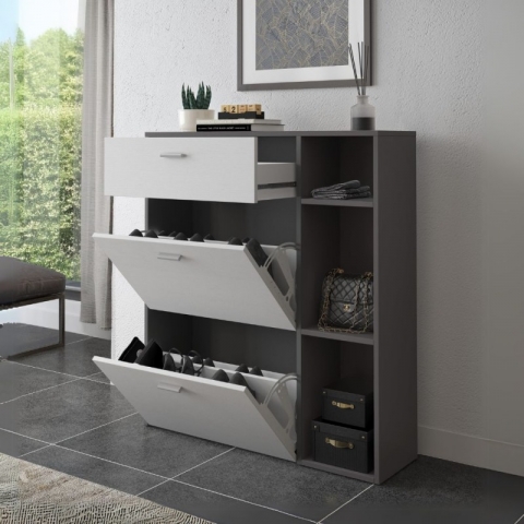 Home » Complementi d'arredo » Scarpiere » SCARPIERA 2 ANTE A RIBALTA E 1 CASSETTO, COLORE GRIGIO ANTRACITE E BIANCO 90x26 H101,5